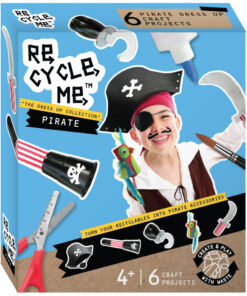 Re Cycle Me gelooft in een wereld waarin kinderen en hun ouders zich meer bewust worden van de hoeveelheid afval die we allemaal produceren. Kinderen kunnen helpen dit te verminderen door te recyclen! Met deze doos kje een echt piratenkostuum maken. Het enige dat je uit je eigen kast nodig hebt is lijm, een schaar, een PET-fles, een wc- en keukenrol, karton.