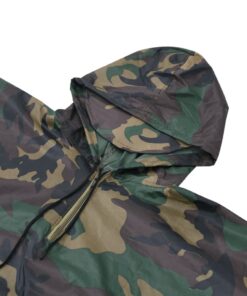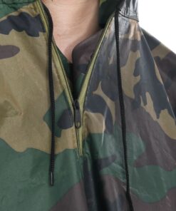 Deze duurzame regenponcho heeft een capuchon met trekkoord, die geschikt is voor verschillende maten voor een comfortabele pasvorm, en een drukknoopsluiting aan de halslijn om regenwater weg te houden van de nek. Dankzij de drukknopen aan weerszijden van de manchetten kan gemakkelijk een paar “mouwen” worden gevormd, wat zorgt voor meer mobiliteit en gemak.
