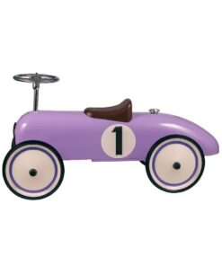 Deze prachtige Kate Retro Roller loopauto in lila kleurstelling is gebaseerd op de stijl van de formule 1 wagens van vroeger. Urenlang speelplezier voor zowel binnen als buiten gegarandeerd. De loopauto is voorzien van metalen wielen en rubberen banden en een kunststof zitting. Leuk als verjaardagscadeau, maar ook heel leuk als woonaccessoire! De loopauto is volledig van metaal en eenvoudig in elkaar te zetten en te monteren. Jouw kindje kan zó opstappen en karren maar! Geschikt voor kinderen vanaf 24 maanden. Afmeting: 75 x 40 x 40 cm. Draaggewicht: 20 kg.