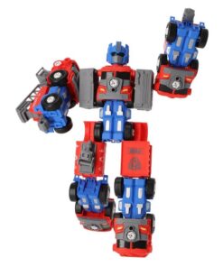 Grote rood-blauwe transformeerbare robot die verandert in een voertuig. Stevig speelgoed met beweegbare onderdelen. Geschikt voor kinderen vanaf 3 jaar.