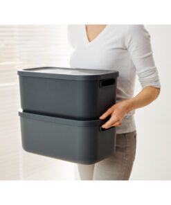 De nieuwe maten 12 l en 20 l passen perfect bij de reeds bestaande 25 l en 40 l boxen en vullen zo het perfect doordachte systeem aan. De boxen zien er niet alleen goed uit, ze kunnen ook prachtig op elkaar gestapeld worden, waardoor u gemakkelijk orde kunt houden in uw huis. Het dragen wordt gemakkelijk gemaakt door de open handgrepen. Het onderhoudsvriendelijke plastic maakt een zeer eenvoudige en snelle reiniging mogelijk, zowel aan de binnen- als aan de buitenkant. Alle producten worden vervaardigd uit 100% gerecycled plastic en zijn 100% recyclebaar.