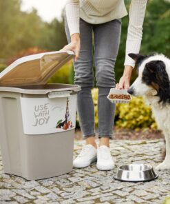 DeRotho Archie Pet Food Containeris de perfecte oplossing om het droogvoer van uw huisdier veilig te bewaren.Ontworpen met een luchtdichte afsluiting, houdt het voedsel vers en aromatisch en voorkomt het schimmel, een veelvoorkomend probleem wanneer voedsel in een open verpakking wordt bewaard.Met een royale inhoud van 38 liter (circa 18 kg) beschikt deze container over vier zwenkwielen, zodat u hem ook als hij vol is gemakkelijk kunt manoeuvreren.Bovendien maakt het strakke ontwerp hem tot een praktisch, decoratief element voor elke ruimte.De siliconen afdichting van het deksel houdt de versheid vast en houdt geuren tegen, terwijl de sluitclip ervoor zorgt dat uw huisdieren niet zonder toezicht kunnen knabbelen.Het niet-giftige, voedselveilige plastic van de container garandeert de veiligheid van het voer van uw huisdier.Het is gemakkelijk schoon te maken: gebruik gewoon een vochtige doek en water, en er wordt een schepje bij geleverd dat u in de ingebouwde houder kunt opbergen om te serveren.