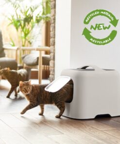 Niet alleen het uiterlijk van deze kattenbak overtuigt, ook de hygiëne wordt niet verwaarloosd.De kunststof bak is gemakkelijk schoon te maken en dankzij het koolstoffilter ontstaan ??er geen nare geurtjes.Het kattenluik wordt snel en veilig gesloten met een magneet, zodat ook hier geen dampen kunnen ontsnappen.Het deksel kan eenvoudig met één hand worden verwijderd om schoon te maken.Moderne kattenbak met kap, deur en schep.