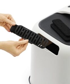 De filters zijn gemakkelijk te vervangen. Aan de achterkant van de kattenbak zit een rooster die je gemakkelijk los kunt halen. In dit rooster bevind zich de filter. Deze kun je er gemakkelijk uithalen en een nieuwe erin schuiven.