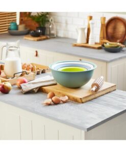 Set van 3 kommen en een vergiet – praktisch en mooi. In deze kleurrijke set vind je alles wat je nodig hebt voor dagelijks gebruik in de vorm van kommen en een vergiet, opgeborgen om ruimte te besparen. De ronde vorm van de kom is niet alleen ideaal voor het kneden van deeg. Samen met het vergiet kunnen salade en pasta rechtstreeks vanuit de keuken naar de gedekte tafel worden geserveerd. De kommen hebben een volume van 1, 2 en 4,8 liter, het vergiet heeft een volume van 3,2 liter. De ronde vorm van de kom is niet alleen ideaal voor het kneden van deeg. Samen met het vergiet kunnen salade en pasta rechtstreeks vanuit de keuken op tafel worden gezet.