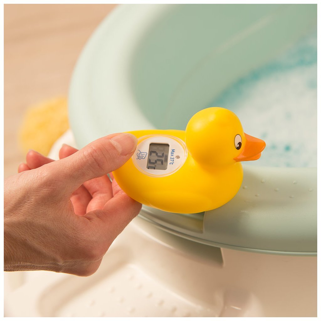 Deze gele badeend heeft het allemaal: ze is niet alleen een heerlijk speeltje voor je kleintje, maar ook een digitale badthermometer. Hij meet de temperatuur van het badwater precies tot op één decimaal, zodat je niet voor verrassingen komt te staan. Want als volwassene heb je een andere temperatuursensatie en zou je het water al snel te heet vinden voor je schatje. Hij kan zowel de watertemperatuur als de kamertemperatuur meten. Voor een snel overzicht geeft de rodeLED aan of het water veel te heet is.