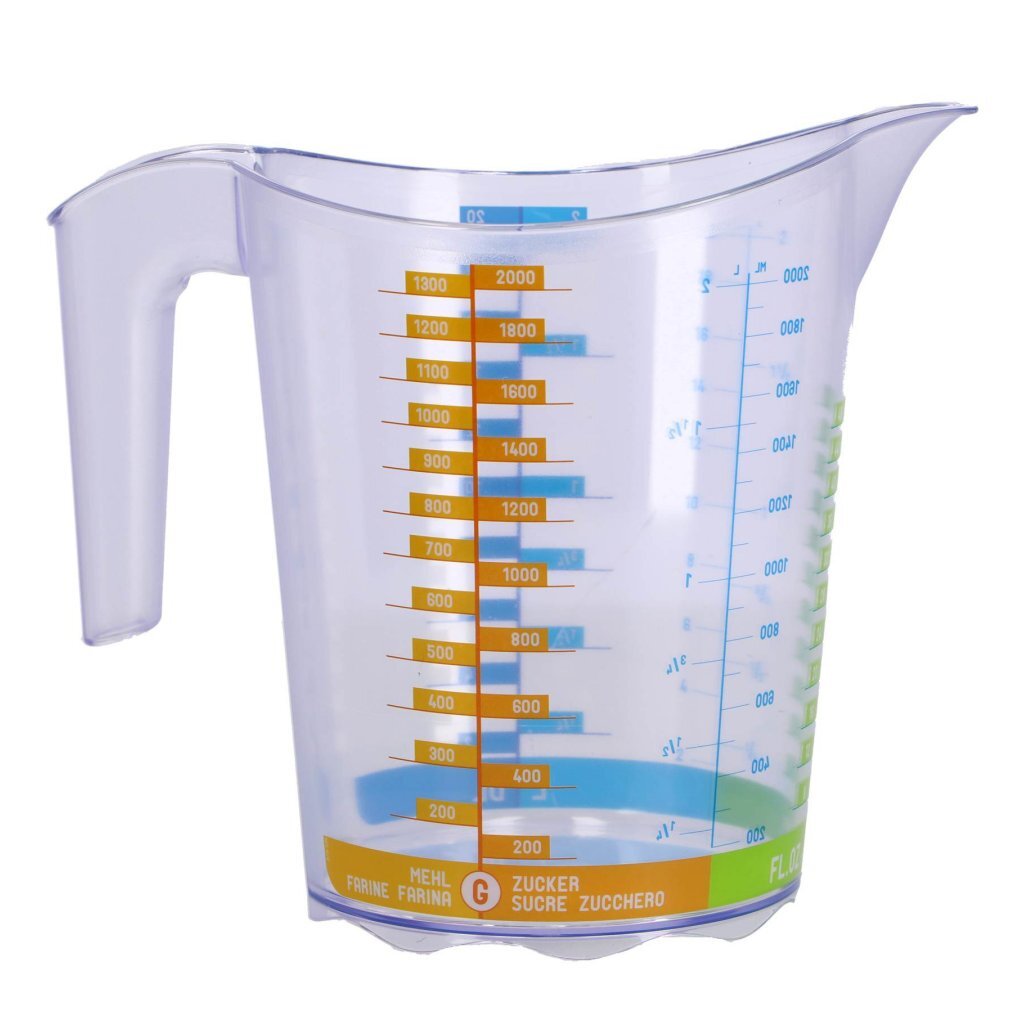 De transparante maatbeker is voorzien van een internationale meetschaal, die rekening houdt met de liter- en deciliter specificaties en met bekers en pinten. De ergonomische handgrepen en de druppelvrije uitloop garanderen een comfortabele bediening. Na gebruik kan de beker eenvoudig in de vaatwasser worden gereinigd. De gebruikte kunststof is voedselveilig en BPA-vrij. Door zijn robuuste kwaliteit is hij uiterst duurzaam en dus milieuvriendelijk. De maatbeker is verkrijgbaar in verschillende praktische maten, die kunnen worden gebruikt voor het opbergen. kunnen in elkaar worden gestapeld om ruimte te besparen zijn. Trakteer uzelf op deze nuttige en betrouwbare keukenhulpjes!