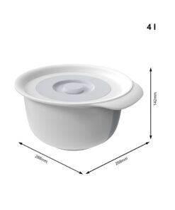 Deze praktische set combineert alles wat je nodig hebt om te bakken: twee hoogwaardige mengkommen in verschillende maten, een tweedelig deksel met spatbescherming, een comfortabele handgreep en een voet die niet wegglijdt op het werkblad. De kommen zijn daarom bijzonder geschikt om te roeren en te mixen en zijn een populaire hulp bij het bakken en koken. Stevige kom met antislipvoet Dankzij de ergonomische handgreep ligt de kom comfortabel in de hand en zorgt voor comfortabel werken. De antislipring op de vloer zorgt ervoor dat je ook bij het werken met de mixer stevig staat en dankzij de spatbeschermingsring ontstaan ??er geen vlekken op het werkblad. In de aparte kleine kom kunnen ingrediënten bijvoorbeeld apart worden afgewogen. Dankzij het deksel is de kom ook perfect voor het bewaren van voedsel.