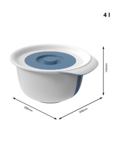 Deze praktische set combineert alles wat je nodig hebt om te bakken: twee hoogwaardige mengkommen in verschillende maten, een tweedelig deksel met spatbescherming, een comfortabele handgreep en een voet die niet wegglijdt op het werkblad. De kommen zijn daarom bijzonder geschikt om te roeren en te mixen en zijn een populaire hulp bij het bakken en koken. Stevige kom met antislipvoet Dankzij de ergonomische handgreep ligt de kom comfortabel in de hand en zorgt voor comfortabel werken. De antislipring op de vloer zorgt ervoor dat je ook bij het werken met de mixer stevig staat en dankzij de spatbeschermingsring ontstaan ??er geen vlekken op het werkblad. In de aparte kleine kom kunnen ingrediënten bijvoorbeeld apart worden afgewogen. Dankzij het deksel is de kom ook perfect voor het bewaren van voedsel.