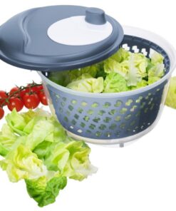Deze slacentrifuge mag in geen enkel huishouden ontbreken. Hiermee kan de gewassen sla snel en eenvoudig worden gedroogd. Alleen als het water van het wassen van de sla goed wordt verwijderd, kan de dressing de sla bereiken en er niet vanaf druipen. Een ander voordeel is dat de bladeren fris en knapperig blijven. Deze slacentrifuge kan echter niet alleen voor sla worden gebruikt, maar ook voor andere soorten groenten en fruit. Deze slacentrifuge ziet er niet alleen goed uit. Het moderne, ergonomische ontwerp van dit artikel zorgt voor een opfrissing in de keuken, terwijl de antislipvoetjes zorgen voor een veilige grip. Met behulp van de soepel draaiende slinger van de slacentrifuge kan de sla dus zonder veel kracht worden gedroogd. De kom kan zelfs zonder het vergiet op tafel worden gebruikt. De capaciteit van de kom is ongeveer 4,5 liter en die van het vergiet 3 liter. Kleur:horizon blauw/transparant.