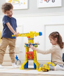 - Zodra je bouwstenen klaar zijn, zet je Rubble in de lift en breng je hem naar de top van de toren