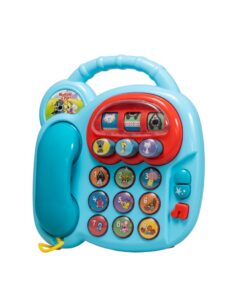 Niet swipen maar drukken, dat kan met deze superleuke Woezel en Pip retro telefoon. Dit speelgoed biedt onzettend veel leuke functies: 9 cijfertoetsen met geluidseffecten, melodietoets, knop waarmee je het volume kunt instellen en 3 grappige toetsen waarbij er een afbeelding van Woezel, Pip of Buurpoes gaat rollen. De telefoon is uitgevoerd met superleuke Woezel en Pip Baby afbeeldingen. Je kunt hem gemakkelijk overal mee naartoe nemen dankzij het handvat en door de telefoonhoorn, die bevestigd is aan een touwtje. Wordt inclusief 2 AA-batterijen geleverd in try-me verpakking. Geschikt voor kinderen vanaf 6 maanden.