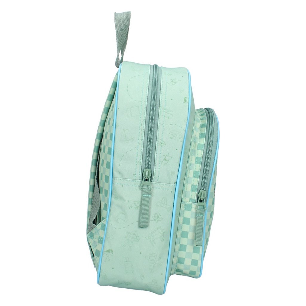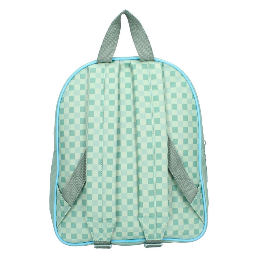 Deze rugzak is zachtgroen van kleur en heeft een grote print van Fien en Teun op het voorvak. Verder heeft het voorvak een geruite print. Het hoofd- en voorvak sluiten beide met een rits. Ook heeft de rugzak een handige lus en verstelbare schouderbanden. Zo is de tas voor iedereen op maat te maken. Samen met hun dierenvriendjes beleven Fien en Teun fantastische avonturen! De collectie bestaat uit verschillende gymtassen en rugzakken. Afmeting:30 x 25 x 11 cm. Kleur: zachtgroen/lichtblauw.