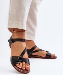 Damessandalen van natuurlijk leer. Op een platte hak. Bevestigd met een verstelbaar riempje met gesp. Leren binnenzool zorgt voor comfort tijdens het gebruik. Ideaal voor warme dagen. Een must have in je zomergarderobe!
