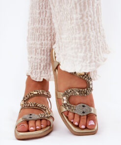Dames sandalen gemaakt van eco-leer zijn de perfecte keuze voor zomerdagen. De platte zool versierd met glitter geeft ze een subtiele glans, en de unieke kristallen die een slangenpatroon vormen, geven ze een bijzonder karakter. Deze sandalen zullen een perfecte aanvulling zijn op zomerse outfits, waarbij elegantie wordt gecombineerd met een trendy, originele uitstraling.