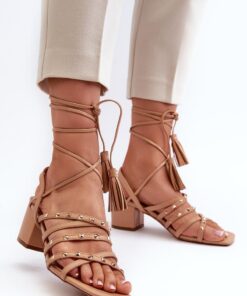 Stijlvolle damessandalen gemaakt van imitatieleer. Aan de voorkant zijn er gevlochten bandjes versierd met studs. Het model wordt vastgebonden. Perfect voor zomerse dagen, deze sandalen zullen een perfecte aanvulling zijn op je zomergarderobe en zorgen voor een vleugje stijl en originaliteit.