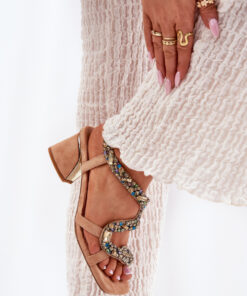 Elegante damessandalen van imitatiesuède zijn een bijzondere keuze voor speciale gelegenheden. Geplaatst op een stilettohak met een spiegelelement. Het model onderscheidt zich door een opvallende decoratie van kristallen, die een uniek slangenpatroon vormen, de aandacht trekken en een bijzonder karakter geven. Ideaal voor avondjes uit, deze sandalen zullen een perfecte aanvulling zijn op verschillende feestelijke outfits, waarbij ze modieus design combineren met een elegante afwerking.