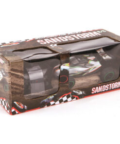 De Sandstorm is een 4-wheel drive RC buggy die klaar staat om er vandoor te gaan zodra je de doos opent. Maak je klaar voor deze blitse buggy met voor- en achteruitversnelling, 4-wheel drive, en een 2-kanaals 2.4 GHz radio. Uitgerust met een ruige polycarbonate carrosserie, met olie gevulde aluminium schokbrekers, batterij en oplader.