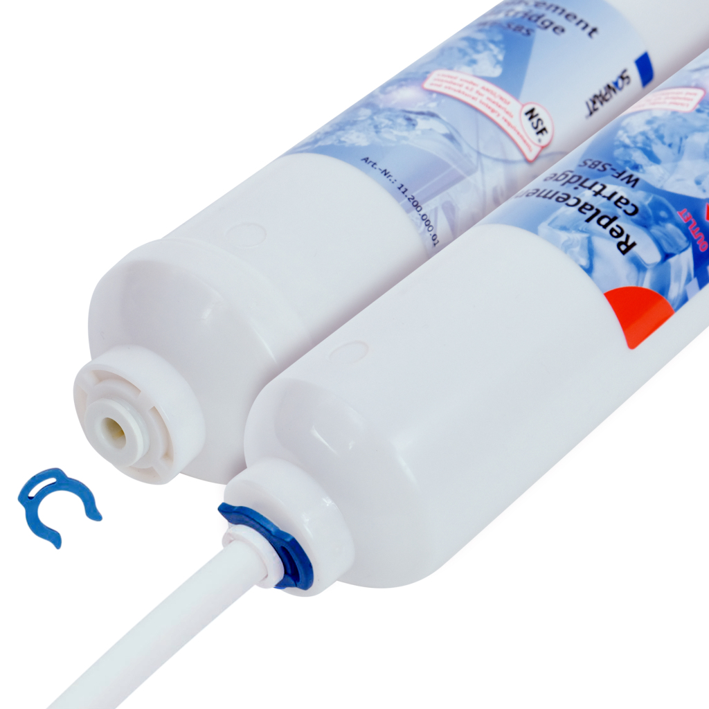 - Nadat de waterfilterslang boven en onder in het waterfilter is geklikt plaats je deze borgring om de slang goed vast te klemmen aan beide zijden van het filter