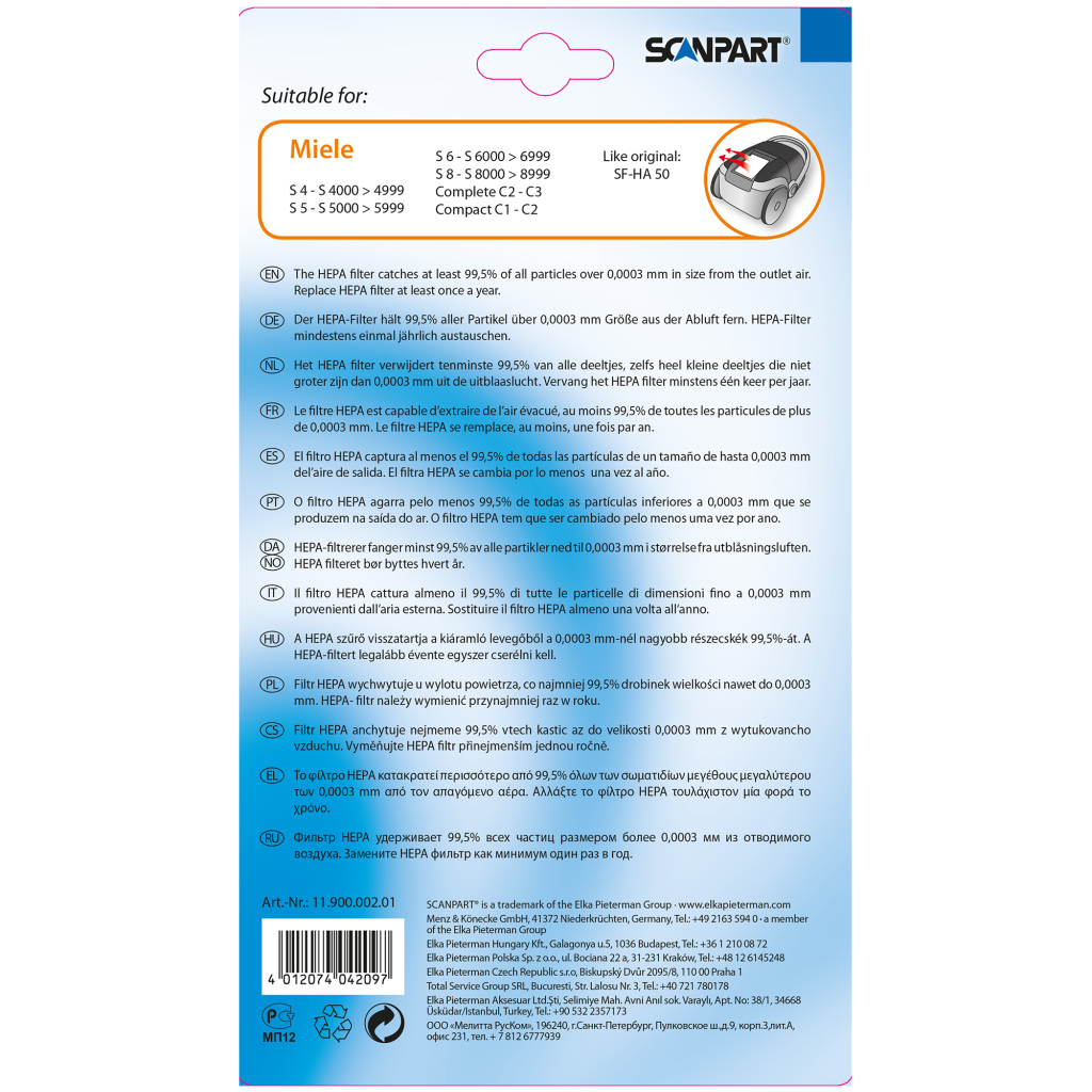 - Vergelijkbaar met het originele Miele HEPA filter SF-HA50