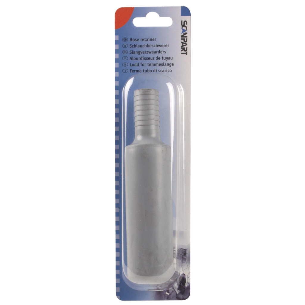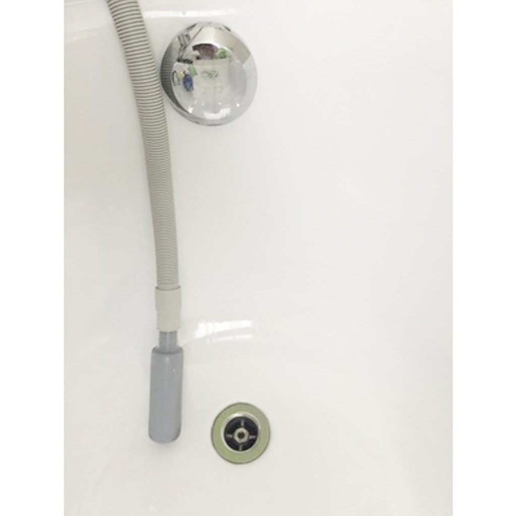 - Het gewicht van de slangverzwaarder beveiligt de afvoerslang wanneer deze in de badkuip of gootsteen wordt gehangen