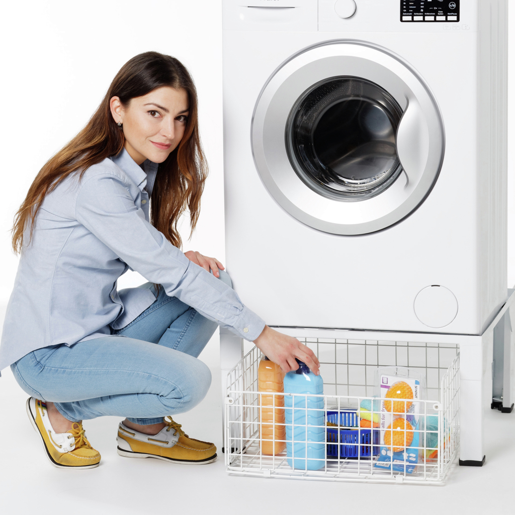 - Met ruime mand voor het opbergen van bijv. wasmiddel en wasspullen