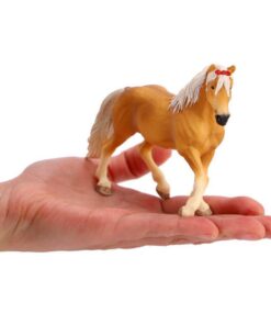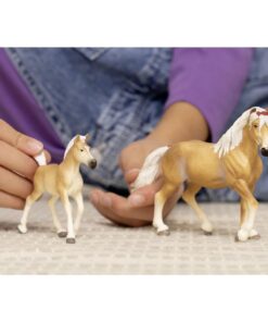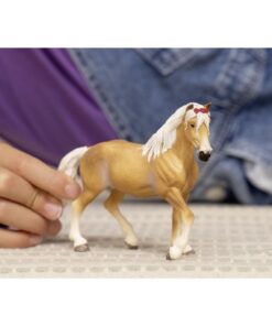 De haflingermerrie van Schleichkijkt aandachtig rond om te zien of ze de aandacht krijgt die ze wil. Wie kan haar nou missen? Met haar rode strik in die weelderige witte manen ziet ze er zó mooi uit dat ze overal de aandacht trekt. Geschikt voor kinderen vanaf 5 jaar.
