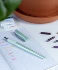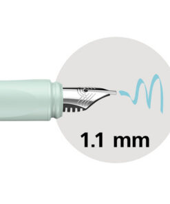 Super mooi en creatief schrijven met deze Kalligrafiepen van Schneider in mooie metallic look. Deze pen is verkrijgbaar in 2 verschillende mooie kleuren; mint en abrikoos. Om eindeloos te kunnen blijven variëren zijn er verschillende losse penpunten verkrijgbaar met verschillende schrijfbreedtes; 1.1mm, 1.5mm en 1.8mm. Deze pennen zijn compatibel met alle standaard inktpatronen en converters. Schrijfkleur: Bermuda blauw. Schrijfbreedte: 1.1mm Houderkleur: Mint.