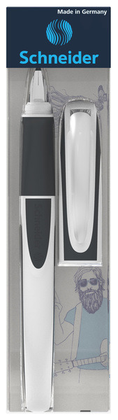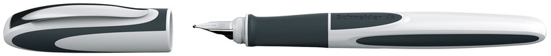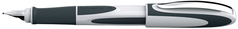 Vulpen met ergonomische rubberen grip. Iridium penpunt gemaakt van hoge kwaliteit roestvrij staal. Voorzien van standaard inktvullingen, koningsblauw (uitgumbaar). Houderkleur grijs/wit.