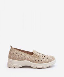 Halfhoge damesschoenen gemaakt van ecoleder. Opengewerkt bovenwerk met bloemen. Slip-on model. Op platte hak. Afgeronde teen. Zachte binnenzool van natuurlijk leer zorgt voor comfort tijdens het gebruik, zelfs de hele dag door. Een must-have in je voorjaarsgarderobe!