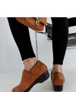Bruine platformpumps Montoro zijn de ideale schoenen voor mensen die op zoek zijn naar comfort en stijl. Gemaakt van hoogwaardig ecologisch leer, bieden ze duurzaamheid en gemakkelijk schoon te maken. Hun instapontwerp maakt ze praktisch en snel aan te trekken, terwijl de ronde neus ze elegantie geeft. Het innovatieve platform garandeert maximaal comfort tijdens het lopen. Deze progressieve pumps zullen je zelfverzekerd en stijlvol laten voelen in elke situatie! Ideaal voor het herfst/winterseizoen.