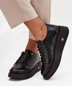 Dames instappers van het merk Artiker gemaakt van gelakt natuurlijk leer zijn een voorstel dat elegantie combineert met dagelijks comfort. Het glanzende afwerking geeft ze een stijlvol karakter, terwijl de stevige zool zorgt voor draagcomfort en een moderne uitstraling. In plaats van traditionele veters heeft het model elastische koorden die het imiteren, waardoor de schoenen een originele uitstraling krijgen en zeer praktisch zijn – ze zijn gemakkelijk aan en uit te trekken. Dit zijn instappers die perfect passen bij stedelijke outfits, waarbij elegantie wordt gecombineerd met een vleugje sportieve casual.