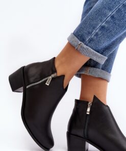 Dameslaarzen van natuurlijk leer. Van binnen verwarmd met schoenendeken. Hak in de vorm van een lage staander. Bovenwerk iets voorbij de enkel met ritsen. Versterkte hielcontrefort zorgt voor stabilisatie van de voet. Amandelvormige teen. Deze klassieke snit mag niet ontbreken in je garderobe!