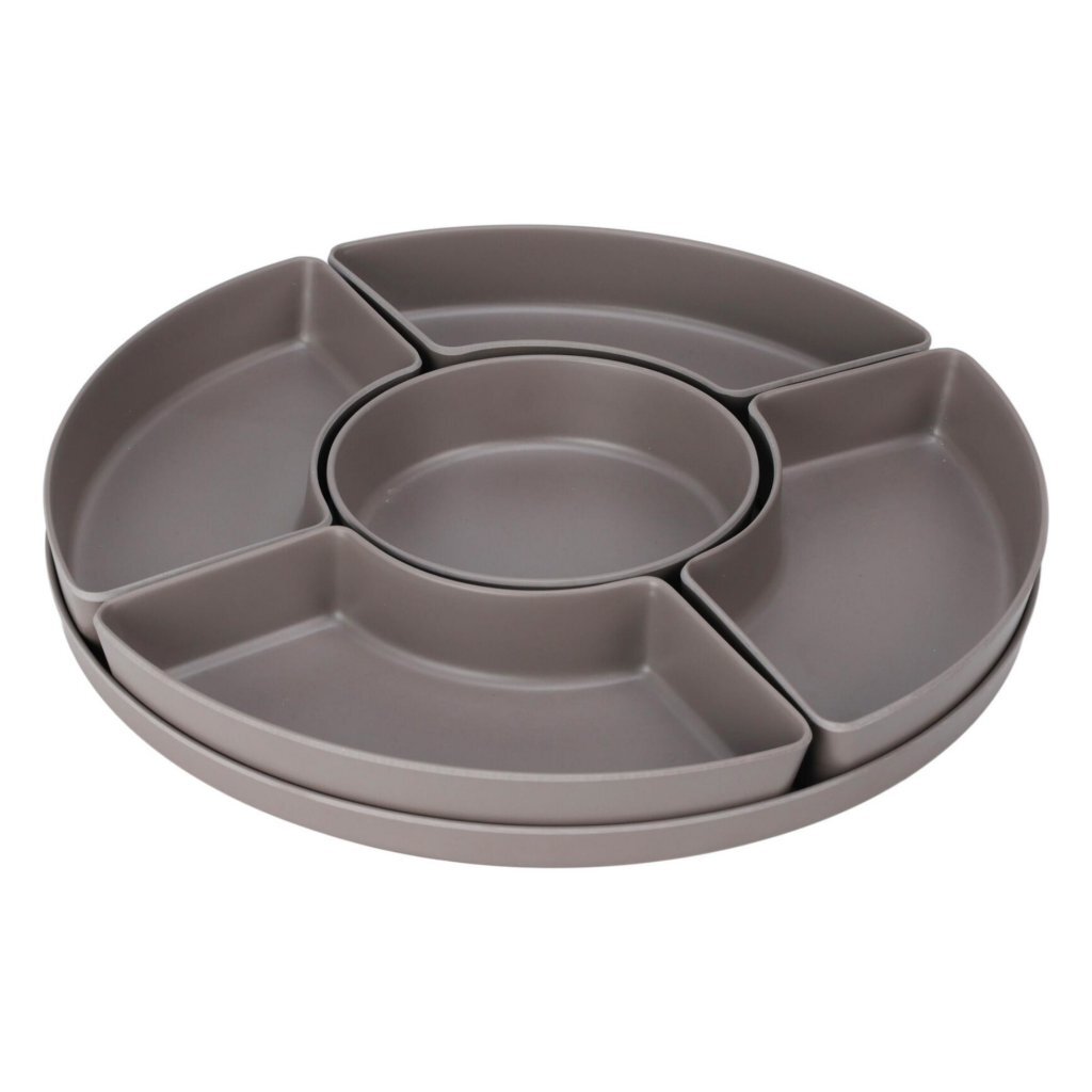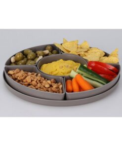 Een serveerbord met 4 uitneembare schaaltjes voor bijvoorbeeld groenten, chips, kaas, etc. Met uitneembaar schaaltje voor dip. Verkrijgbaar in verschillende kleuren. U kunt niet kiezen, maar ontvangt een willekeurige kleur.
