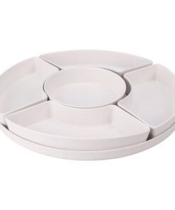 Een serveerbord met 4 uitneembare schaaltjes voor bijvoorbeeld groenten, chips, kaas, etc. Met uitneembaar schaaltje voor dip. Verkrijgbaar in verschillende kleuren. U kunt niet kiezen, maar ontvangt een willekeurige kleur.