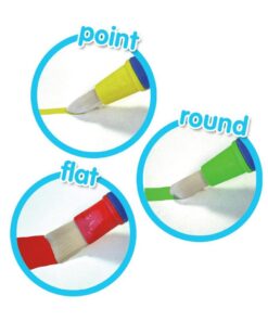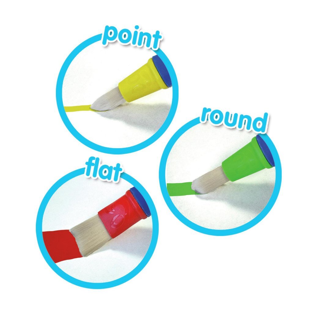 Deze set bevat drie zachte, veilige kwasten die ideaal zijn voor jonge kunstenaars om mee te schilderen. Perfect voor het ontwikkelen van creativiteit en fijne motoriek op een veilige manier. Geschikt voor kinderen vanaf 1 jaar.