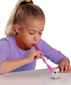 Drie verrassingen wachten om gevonden te worden. Vind de katjes, met hun zachte witte vachtjes. Met de vier gekleurde blaas airbrush pennen geef je iedere kitten vrolijke kleuren, stippen en strepen. Klaar? Was ze onder de kraan schoon en ze zijn klaar voor een nieuwe creatie!