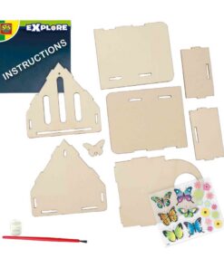 Het is tijd voor meer vlinders in de tuin of het balkon! Het Explore vlinderhotel kan door kinderen zelf gebouwd en versierd worden met vlinder stickers. Dit STEM-speelgoed is niet alleen leuk, maar ook erg leerzaam. Bouw stap voor stap het houten vlinderhotel en vul het daarna met natuurlijke materialen die je zelf buiten hebt gevonden. Zo maak je een beschut plekje voor de vlinders! Giet suikerwater in het bakje en wacht tot de mooiste vlinders afkomen op het zelfgebouwde vlinderhotel!