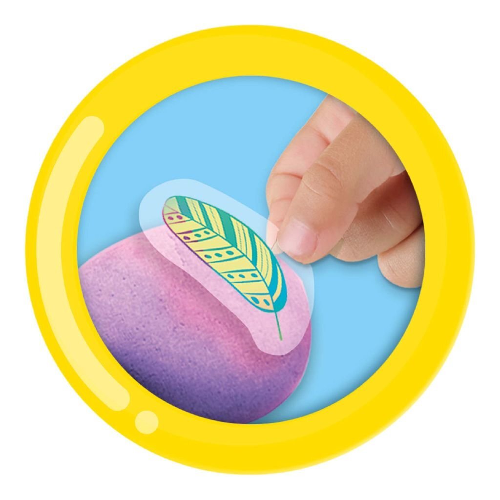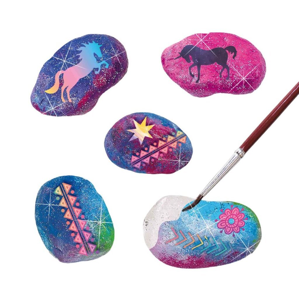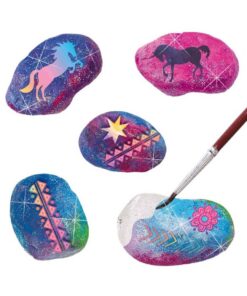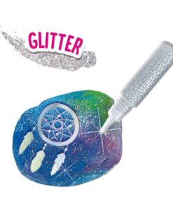 De stenen zijn met de toffe rub on stickers en verf om te toveren tot magische galaxy stenen. Kinderen kunnen de 5 stenen helemaal naar eigen creativiteit omtoveren en met de glitter worden de stenen helemaal afgemaakt.