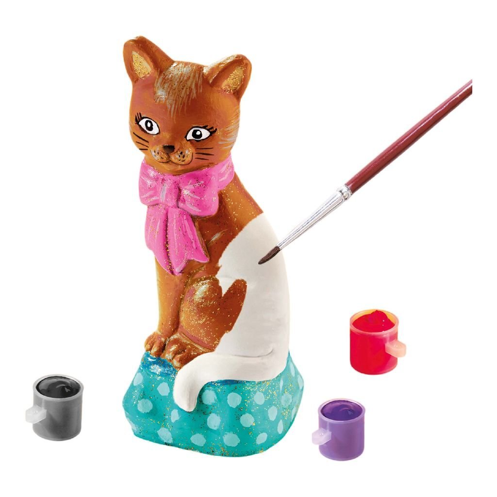 Ook dol op katten? Leuk voor zowel volwassenen als kinderen om zelf te maken! Giet de 3D latex mal vol gips en schilder de beeldjes met de zes kleuren plakkaatverf. De gouden glitterlijm staat garant voor een stralend resultaat!