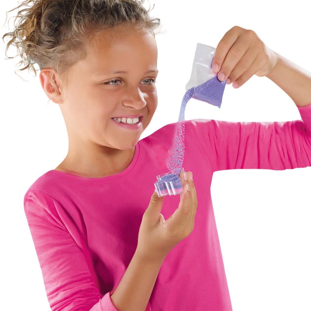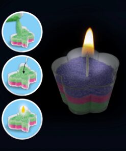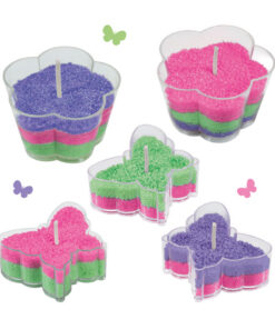Ontdek creatief plezier met de Zand was kaarsen! Maak 5 unieke kaarsen door de gekleurde kaarswaxkorrels in de kleuren paars, groen en roze in de meegeleverde vlinder- en bloemvormige bakjes te gieten. Plaats de lont en creëer prachtige kaarsen die perfect zijn om cadeau te geven of je kamer mee te versieren. De set bevat alles wat je nodig hebt: 3 vlindervormige- en 2 bloemvormige bakjes, kaars wax korrels en kaarslonten. Perfect voor zowel kinderen als volwassenen die houden van knutselen en creativiteit!