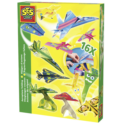- Inhoud: 16 vellen voorbedrukt vliegtuigpapier, vliegtuighouder, stickervel en instructies