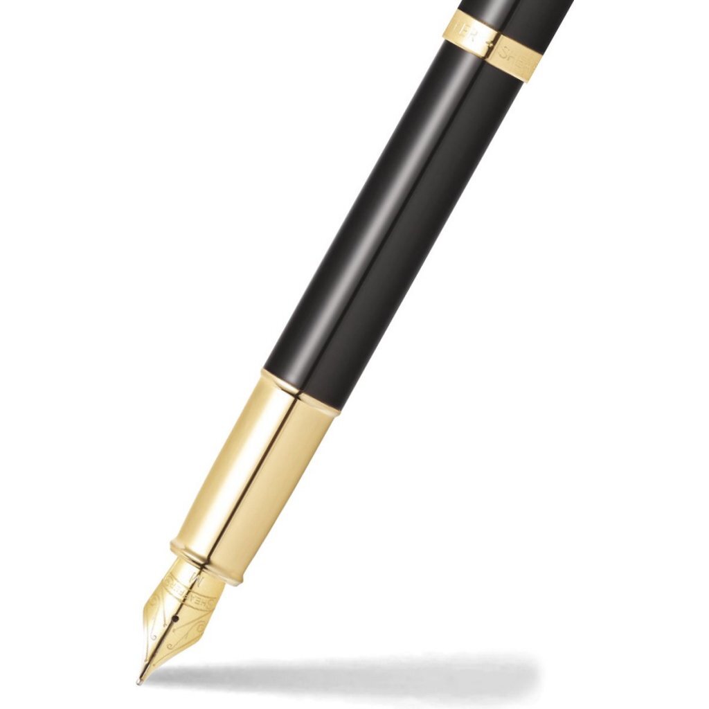 DeSheaffer SF-E0932253 vulpen 100 in glanzend zwart met goudkleurig gepolijste afwerking is voorzien van een medium penpunt M van roestvrij staal dat een nauwkeurig en betrouwbaar schrijfcomfort garandeert. Inclusief een Sheaffer converter die zelf gevuld kan worden. De populaire Sheaffer vulpen 100 met zijn moderne ontwerp en de subtiel uitgesneden clip, is een betaalbare manier om de schrijfervaring naar een hoger niveau te tillen en tegelijkertijd indruk te maken. De wereldwijd erkende witte Sheaffer stip, die symbool staat voor schrijfexcellentie, kwaliteit en prestige, is terug te vinden op de clip. De Sheaffer 100 pennen zijn beschikbaar als vulpen, rollerball en balpen in een breed scala van eigentijdse kleuren en worden geleverd in mooie geschenkdoos.