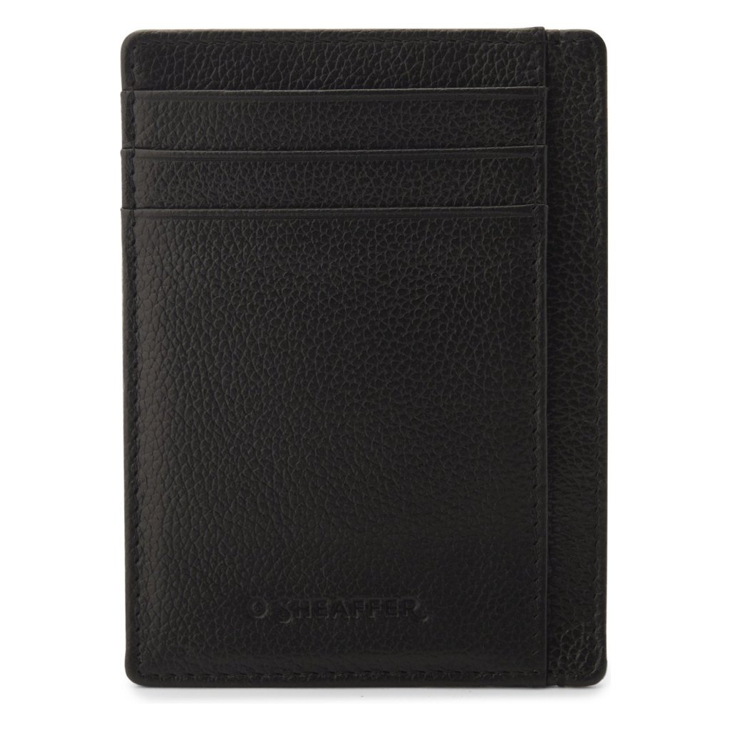 Balpen in glanzend zwart met chroom gepolijste afwerking garandeert een nauwkeurig en betrouwbaar schrijfcomfort. Inclusief een universeel standaard Sheaffer medium balpenvulling in zwart. De Sheaffer balpen 300 met iconische clip met sleuf maakt zijn aanwezigheid bekend met een indrukwekkend, gestructureerd profiel en uitmuntende schrijfprestaties en overbrugt moedig de werelden van het traditionele en het onverwachte. De verfijnde creditcardhouder is gemaakt van echt leer met textuur en is voorzien van 6 creditcardsleuven en een valuta compartiment.