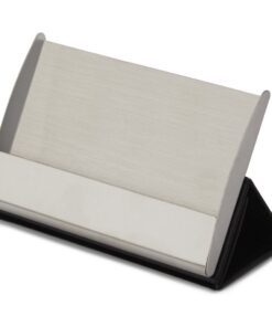 - Visitekaarthouder van zwart kunstleer en metaal is beveiligd met een magnetische sluiting en biedt plaats aan 10-15 visitekaartjes of tot 5 creditcards