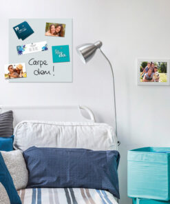 Magneetbord met 2 sterke magneten. Beschrijfbaar met alle soorten krijtmarkers en boardmarkers, Zowel droog als vochtig schoon te vegen. Voorzien van zekerheidsglas naar de norm EN 12150-1. Onzichtbare ophanging, eenvoudige montage. 7 jaar garantie. Formaat 450 x 450mm, kleur wit.