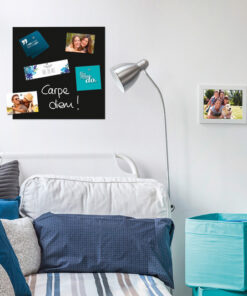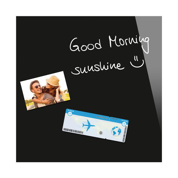 Magneetbord met 2 sterke magneten. Beschrijfbaar met alle soorten krijtmarkers en boardmarkers, Zowel droog als vochtig schoon te vegen.Voorzien van zekerheidsglas naar de norm EN 12150-1. Onzichtbare ophanging, eenvoudige montage. 7 jaar garantie. Formaat 450 x 450mm, kleur zwart.