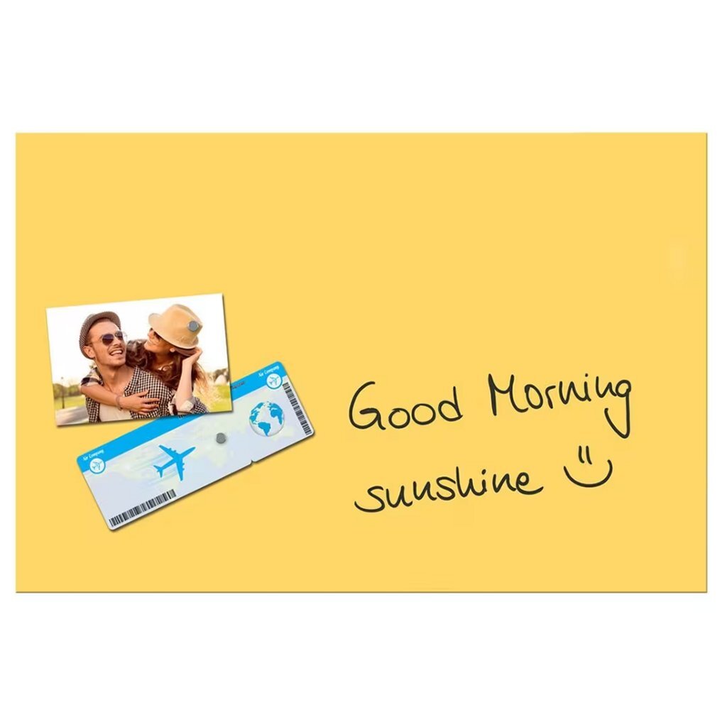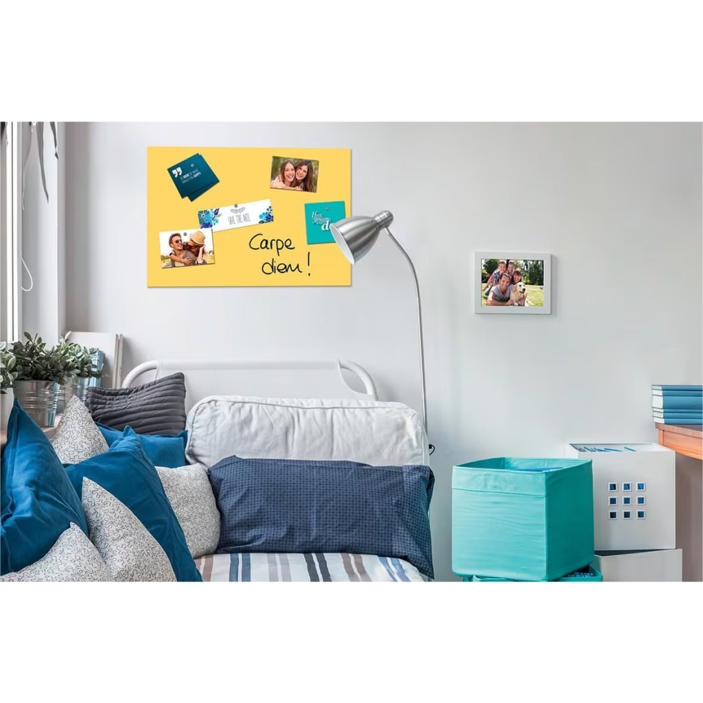 Het Sigel SI-B1208 glasmagneetbord Be!Board is een moderne alleskunner om op te schrijven en notities op te plakken – ideaal voor kleine kantoren en thuis. Het Be!Board glas-magneetbord in formaat 60 x 40 cm met een glanzend zonnegeel oppervlak. Alleen magnetisch met sterke neodymium magneten, normale magneten houden hier niet. Beschrijfbaar met krijt- en glasboardstiften, afneembaar met een vochtige of droge doek. 2 sterke neodymium magneten worden meegeleverd. Frameloos ophangsysteem. Ook meerdere boards kunnen naast elkaar worden opgehangen Gehard veiligheidsglas, krasbestendig en 7 jaar fabrieksgarantie Of het nu thuis is in de gang, in de keuken of in het homeoffice of in kleine kantoren: dit glas-magneetbord met een elegant, glanzend oppervlak is perfect om op te schrijven en notities op te plakken. Boodschappenlijstjes, kleine geheugensteuntjes of informatie van de laatste afspraak – niets wordt vergeten, niets gaat verloren. Ook bij Be!Board staat veiligheid hoog in het vaandel. De glasplaat bestaat uit gehard veiligheidsglas (ESG volgens EN 12150-1).