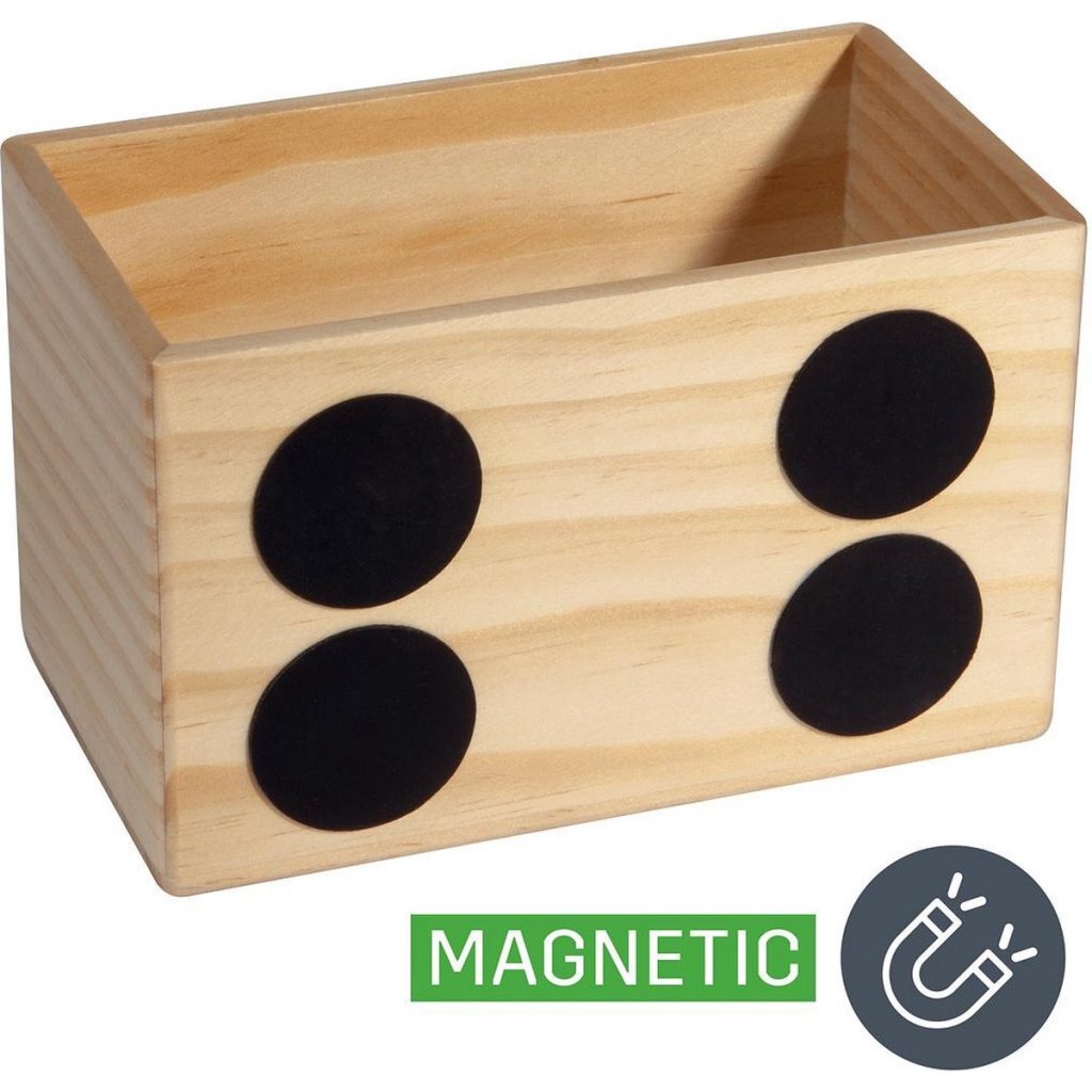 - Deze chique houten box met geïntegreerde magneten houdt stiften en accesoires altijd bij de hand op magneetborden, glas-magneetboards of whiteboards