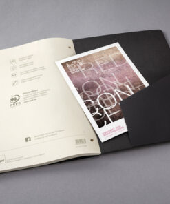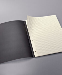 Luxe schrijfblok zijdelings verlijmd. Voorzien van het unieke zwarte softwave-oppervlak. De omslag kan volledig omgevouwen worden, hierdoor neemt het schrijfblok minder ruimte in waardoor het een prettig schrijfcomfort heeft. Handig insteek vak op de achterzijde voor het bewaren van losse bladen. 120 paginas met 2-4 gaats perforatie. 80 grams charmoiskleurige paginas. geruit. A4 Zwart